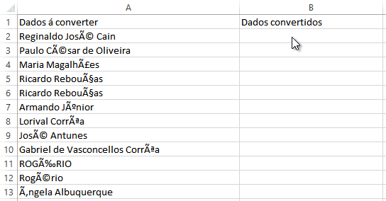 Foi exportada uma lista de um banco de dados, mas os dados estão em UTF-8, ou seja, os caracteres de acentuação e o “ç” estão bagunçados nas células.