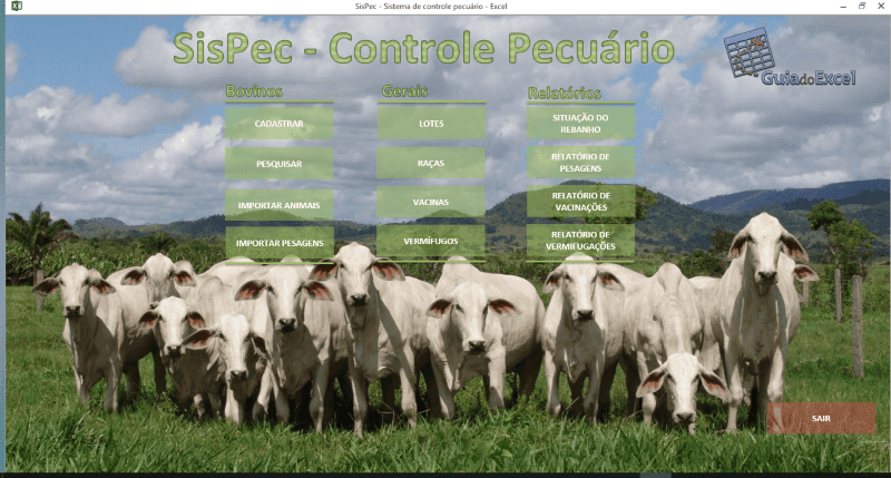 Neste sistema há um cadastro de bovinos, importação dos mesmos por Excel, importação dos pesos dos animais na balança, registro das vacinações, vermifugações, relatórios de situação do rebanho, pesagem, vacinas e vermifugações.