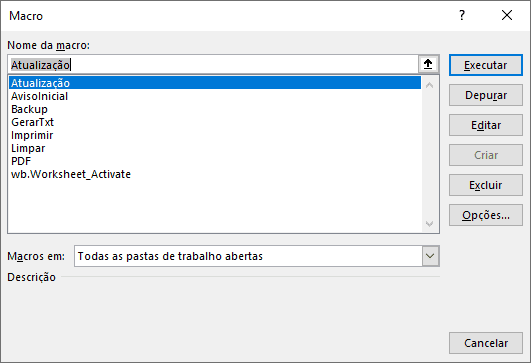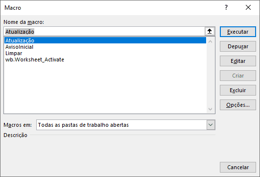 Pastas de trabalho no Excel que normalmente contém macros as exibem na interface normal do usuário, conforme mostra a imagem seguinte.
