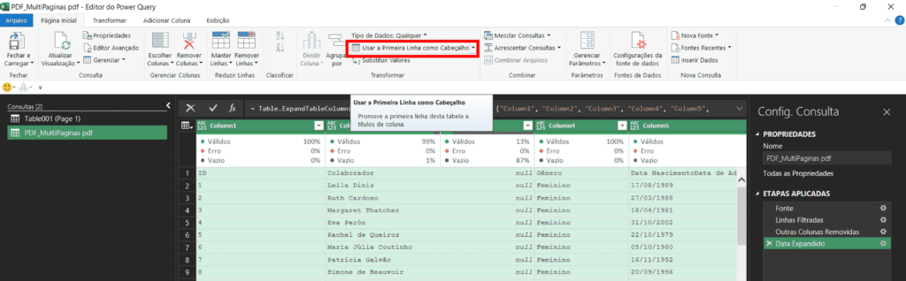 Como importar pdf no excel com power query 4