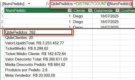 Pedidos = DISTINCTCOUNT(Vendas[NumPedido])