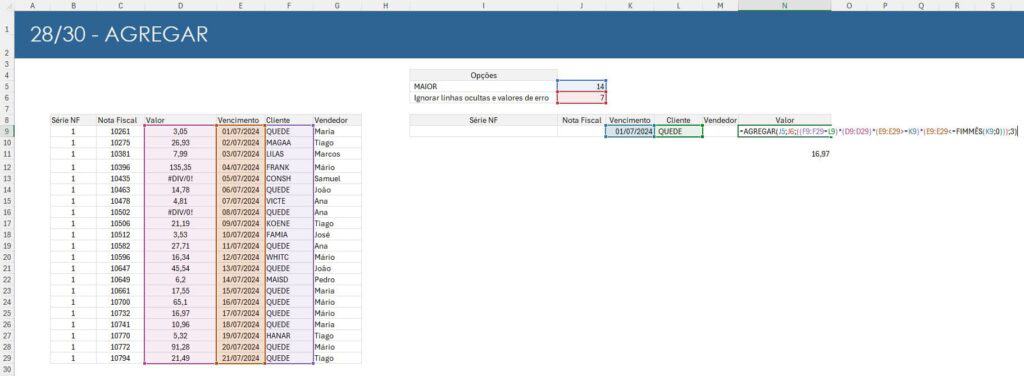 Como utilizar a função AGREGAR no Excel com artigo com imagens, vídeo-aula e download da planilha de exemplo gratuita.