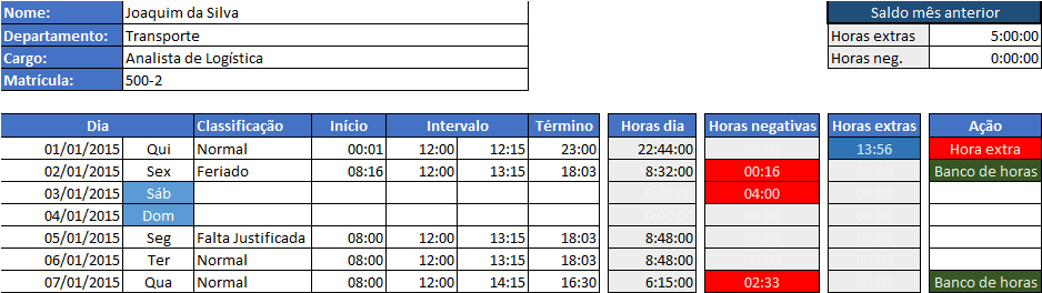 Esta é uma melhoria da pasta de trabalho do artigo: Controle de Hora Extra – Excel 2007/2010 – Planilha de hora extra 2.0.