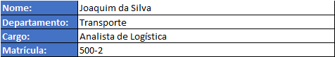 Configure nesta parte da planilha o nome do funcionário, departamento, cargo e a matrícula, se houver. Estes dados são utilizados na folha de ponto e para identificação do lançamento.