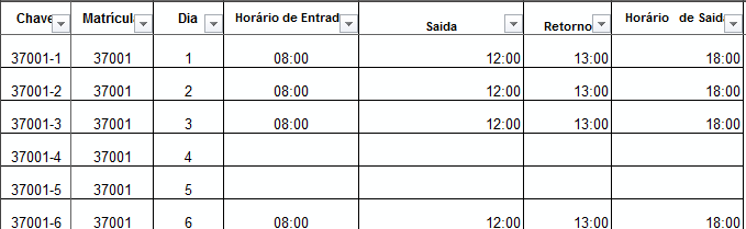 Na planilha Batidas de ponto você pode informar todos os horários em que houveram as marcações de ponto, ou senão deixar vazia, neste caso a planilha será emitida em branco permitindo que sejam escritos os horários manualmente.