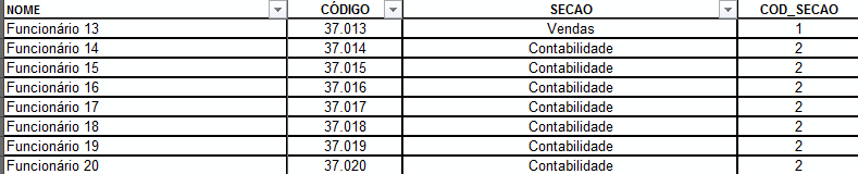 'Total de funcionarios, de cima para baixo localiza a última célula preenchida da lista'