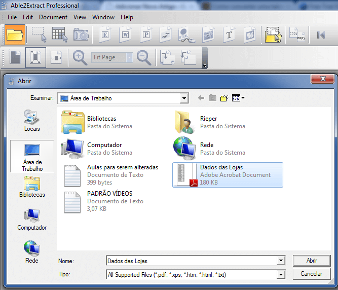 Após ter aberto o programa Able2Extract você terá a tela em branco, basta clicar na pasta amarela e selecionar o arquivo PDF.