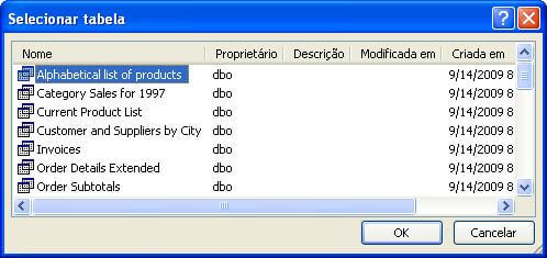 Passo 5: Aqui o Excel dá uma despirocada na minha opinião, dado que você tinha acabado de dizer que não queria utilizar uma tabela específica, mas tudo bem. Selecione qualquer tabela e clique em OK.