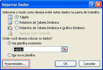 Passo 6: Selecione o botão propriedades, pois vamos alterar a consulta do banco.