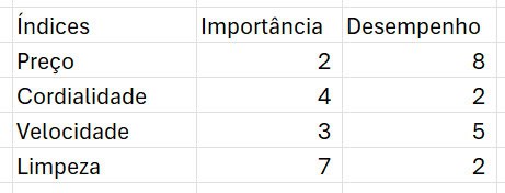 • Se Limpeza tem alta importância e baixo desempenho → melhoria urgente.
