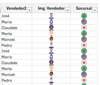 Para criar uma tabela dinâmica com imagens, inicialmente você precisará de uma tabela ou lista com imagens preenchidas nas células, como temos abaixo: