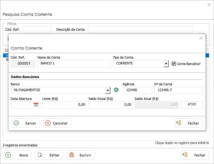 Cadastre todas as contas da sua empresa no sistema, as movimentações são feitas por conta e pode controlar elas conta a conta.