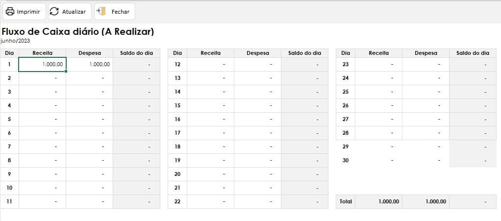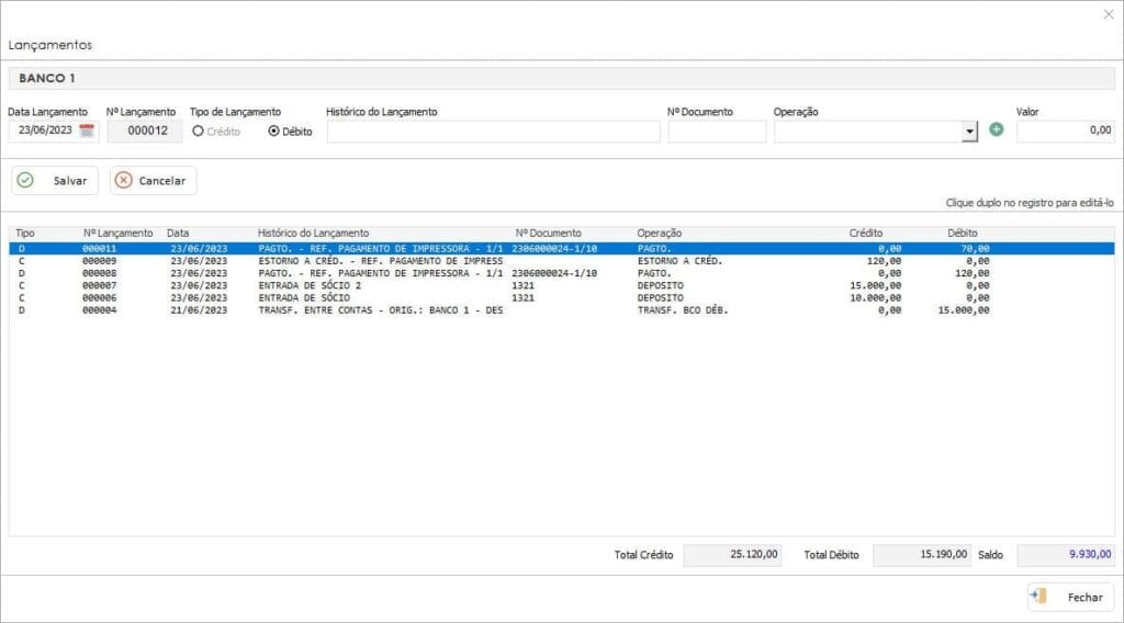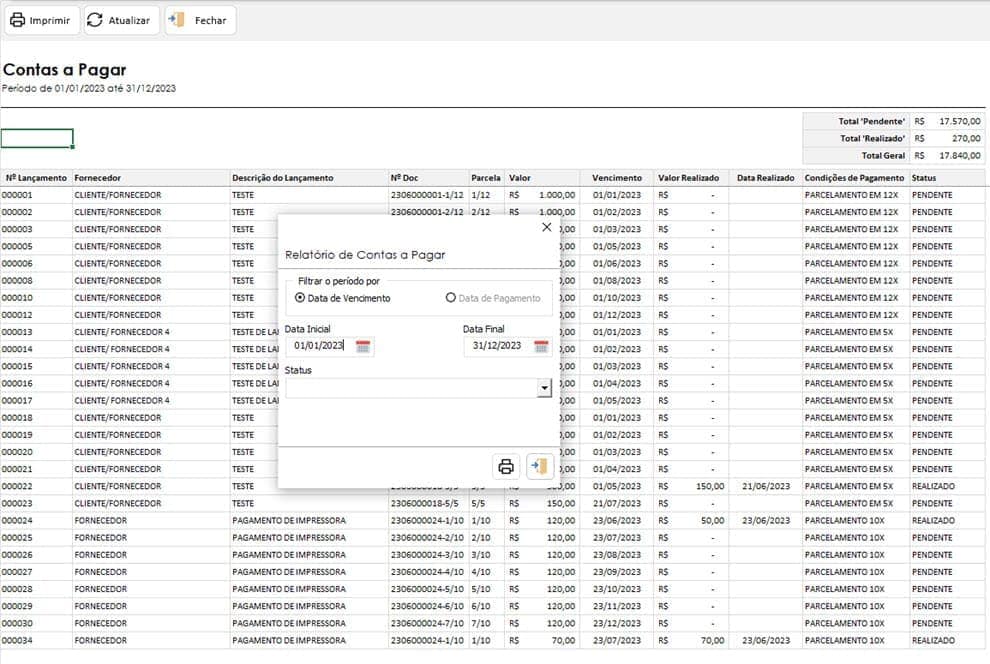 São criados os lançamentos previstos e também podem ser baixadas as contas a pagar e a receber facilmente.