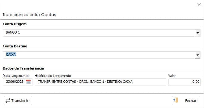 No formulário de transferência podemos realizar a movimentação de valores entre contas de forma bastante simles.