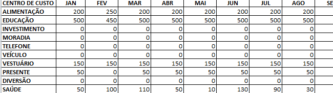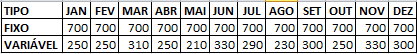 Copie também as fórmulas para todos os meses do centro de custo. Logo ao lado você tem o tipo de despesa Fixa e Variável.