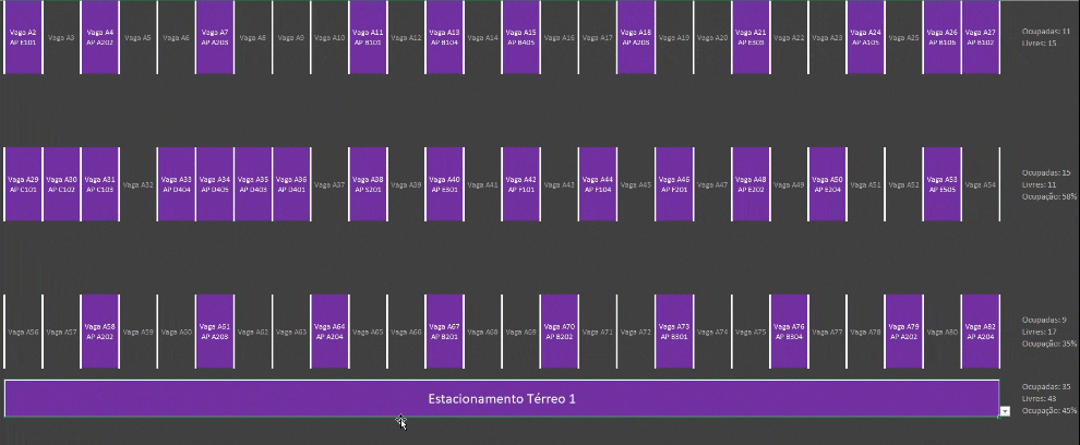 Como resultado da aplicação da fórmula temos a dinâmica abaixo criada, aonde alteramos o estacionamento na célula e temos as células modificadas retornando os apartamentos.