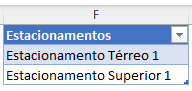 No cadastro de estacionamentos temos os nomes de cada uma das áreas.