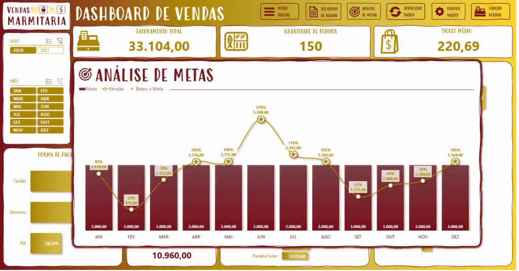 Dashboard Planilha Marmitas Excel