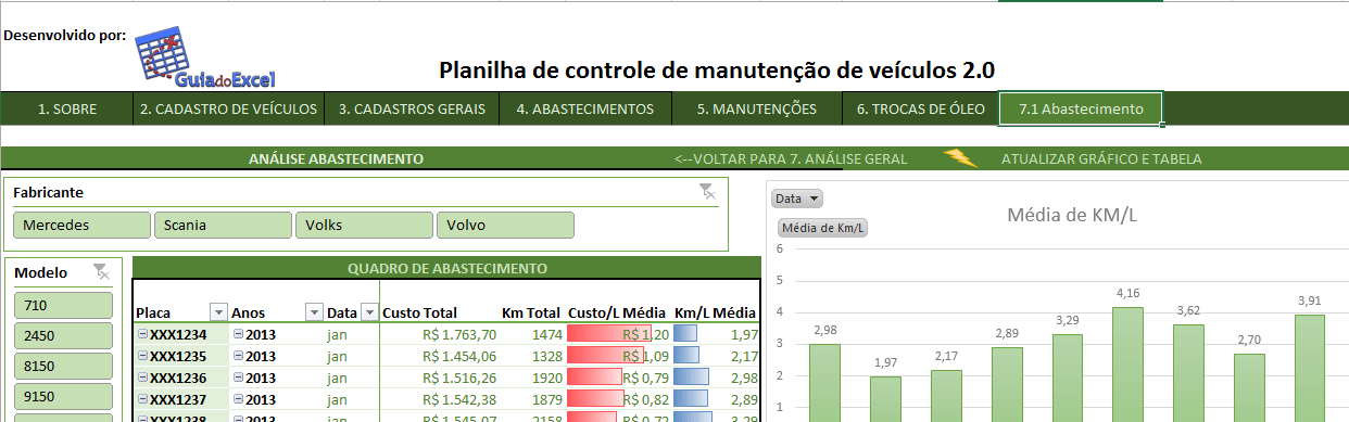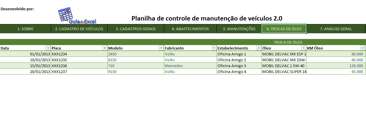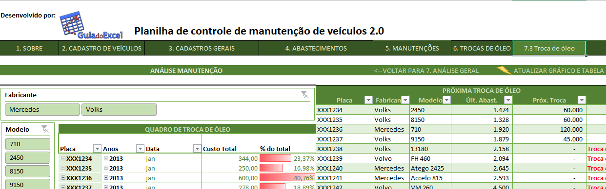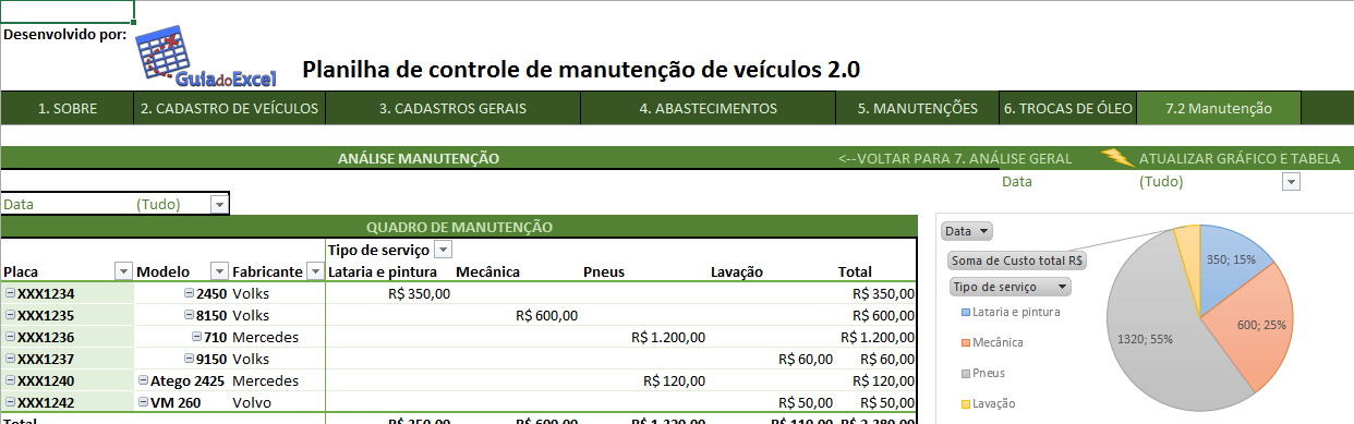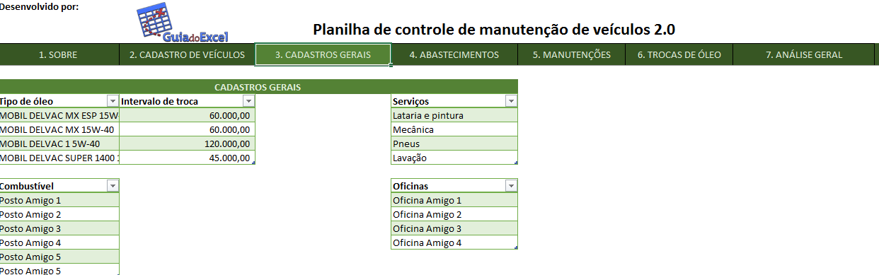 A Planilha Excel de controle de manutenção de veículos 2.0. Disponibilizar uma planilha Excel de controle de manutenção de veículos baseada no artigo http://guiadoexcel.com.br/planilha-excel-de-controle-de-despesas-e-manutencao-de-veiculos com uma nova apresentação.