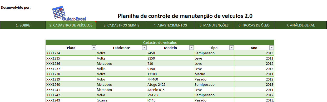 O modelo foi baseado em uma empresa que possui caminhões, mas pode ser utilizado também para veículos leves, qualquer melhoria que queiram sugerir ou que implementem podem entrar em contato pelos comentários para analisarmos e criarmos novas versões.
