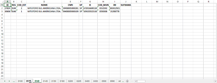 Para isso basta clicar no botão Importar Sped com o ícone do Excel. O sistema abre automaticamente todas as sessões do arquivo em planilhas do arquivo Excel.