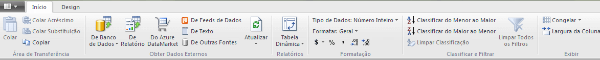 Após a instalação do suplemento abra o Excel 2010 e você terá a nova guia chamada PowerPivot: