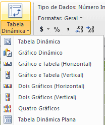 Note que você pode criar vários tipos de tabelas dinâmicas, gráficos dinâmicos e tabela dinâmica plana.
