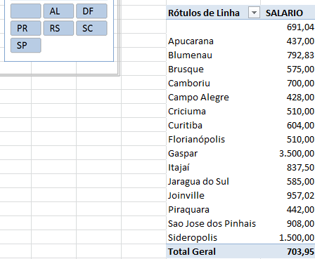 Após a conexão criada você terá uma lista de dados logo abaixo deste painel de dados, e você poderá trabalhá-los utilizando o botão Tabela Dinâmica, com as opções: