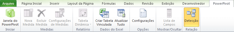 Alguns botões somente estarão disponíveis após a criação de uma planilha com o Power Pivot.