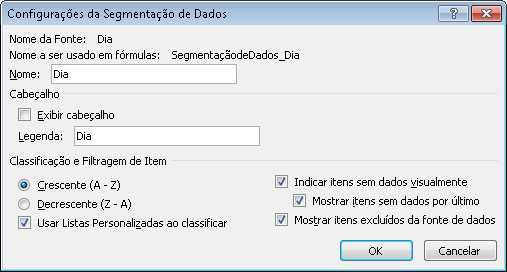 Em Configurações da Segmentação de Dados poderão ser alterados o nome dos campos, desabilitada a exibição e alterada a ordem dos dados.