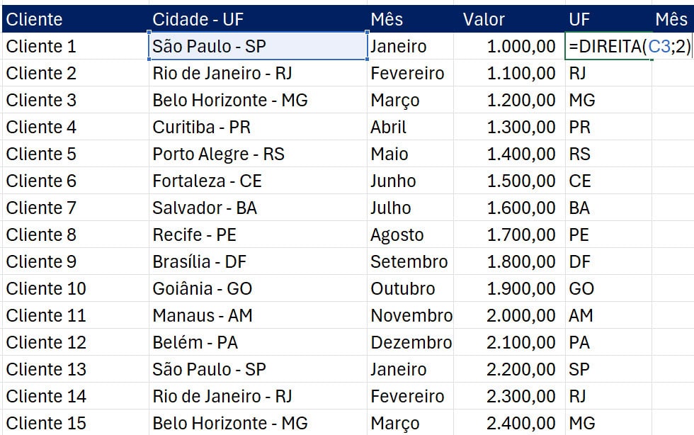 =DIREITA(texto; [núm_caract])