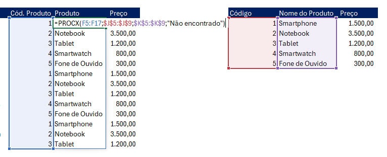 =PROCX(valor_procurado; matriz_pesquisa; matriz_retorno; [se_não_encontrado]; [modo_correspondencia]; [modo_pesquisa])